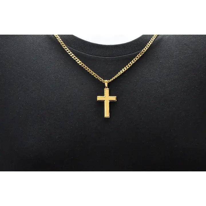Showcase your style with this sturdy Men's Jewelry's Gold Stainless Steel Cross Pendant Necklace. A piece that merges durability and elegance, this necklace features a striking gold cross pendant, reflecting our dedication to crafting quality stainless steel jewelry. Paired with a 24" curb chain, it's a piece from a brand that has been leading the way in men's stainless steel jewelry for over 15 years. Our expertise in men's jewelry design ensures a piece that resists rust, corrosion, and maintains its allure for years.